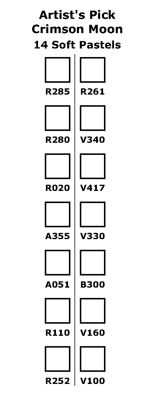 Following the theme of astronomy for this year's Artist's Pick, Crimson Moon was inspired after viewing the moon one night. Instead of the bright white one is accustomed to, it was red, an imposing red that greatly contrasted against the deep blue sky. Through the reflection of both the red moon and blue sky, the buildings around gave a rich violet hue that was reminiscent of a gothic novel. With these deep blues and violets, artists can achieve a rich and cool landscape along with complimentary bright and pure reds, that bring a strong vocal point to the piece. TJ