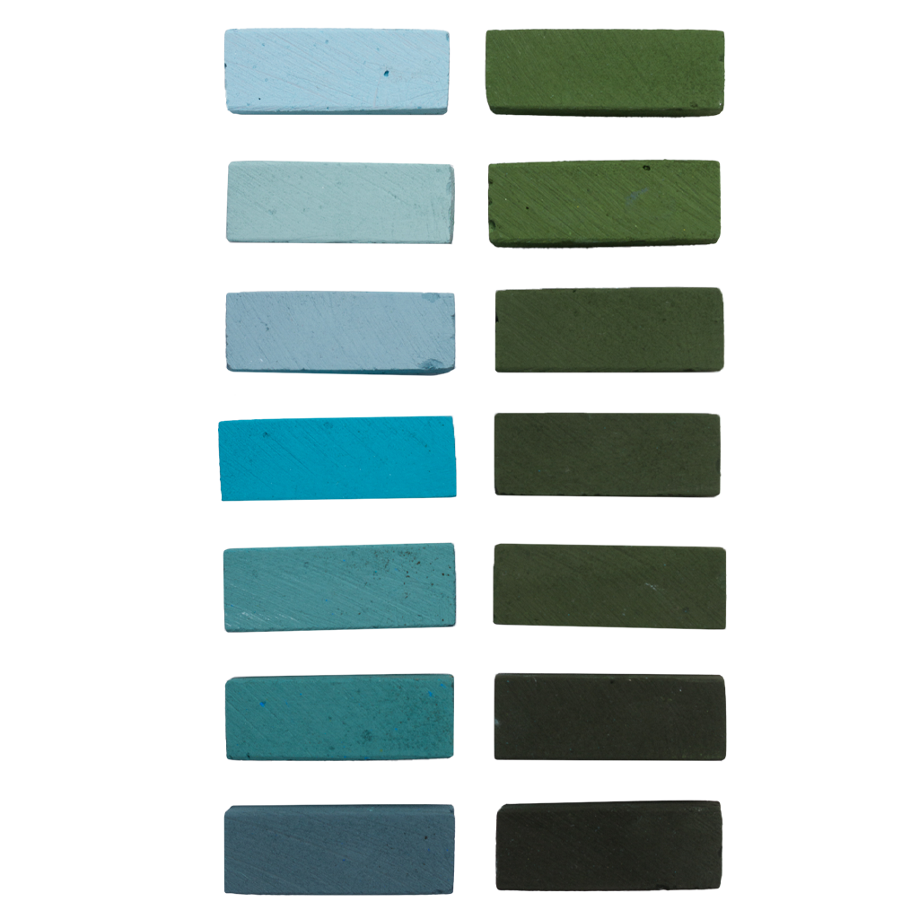 The 14 Forest Mist set includes a mix of blues and greens that translate the hues of dew upon a lush, inviting forest. Rich greens of a grand Oak, Douglas Fir, Ponderosa Pine accented with dreamy blues. Paint your version of serenity, enchantment and tranquility.
