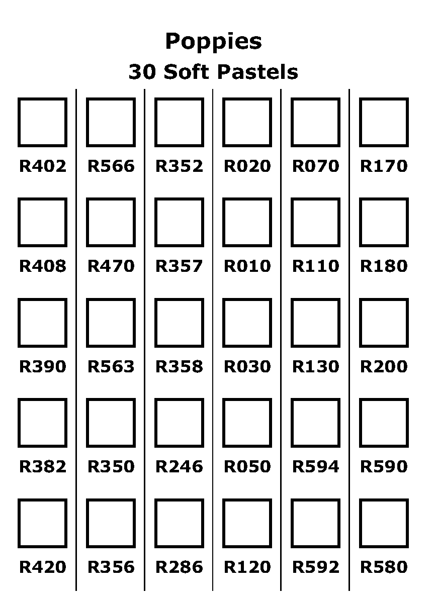 Our new 30 Poppies is a re-creation of the discontinued 30 Firecrackers Reds Set. This compilation includes four new colors: R566, R357, R358 and R356! This set captures the delicate range of our most stunning reds; from soft blushes to deep, velvety crimsons. It's perfect for painting vibrant florals, dramatic landscapes and rich, expressive artwork. Luscious!
